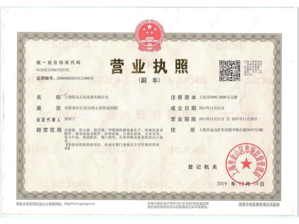 上海凱凡石化設備有限公司公司地址:上海市金山區朱涇鎮亭楓公路2640號免費服務熱線:400-1500-688總部電話:021-56083050郵編:201503公司網址:shkfsh_com.hfgrm.cnE-mail:kfshjx@kfshjx.com